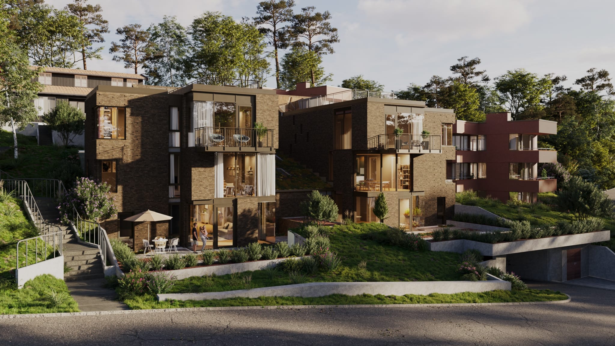 Andreetasjen har to soverom med direkte adkomst til eget bad og terrasse og balkong i ulike himmelretninger, i tillegg til en romslig stue. Herfra kan du gå videre til takterrassen på nesten 50 m², som gjør denne eksklusive leiligheten til et drømmested for dem som liker å nyte tilværelsen ute.